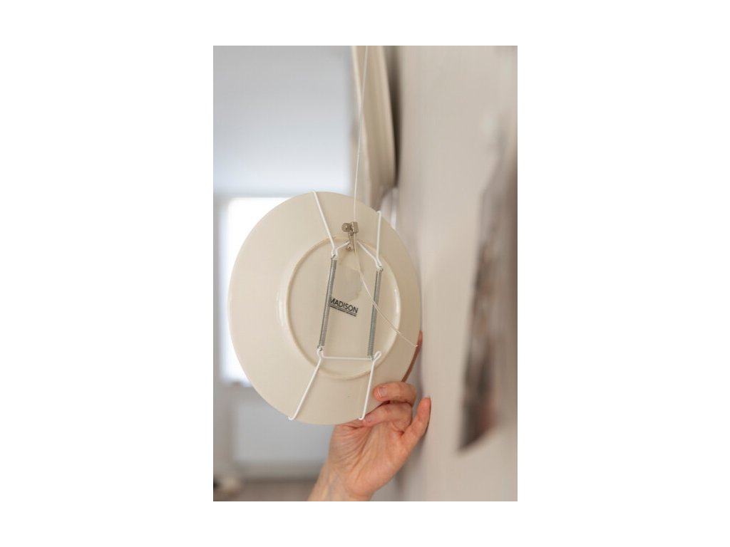 Vhodné pro talíře o průměru 16 - 24 cm a mají maximální nosnost 1 kg. Připevněte háček na závěs a talíř pak můžete pomocí lanka zavěsit na zeď. Háčky a lanka Artiteq umožňují výškové nastavení.