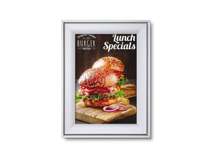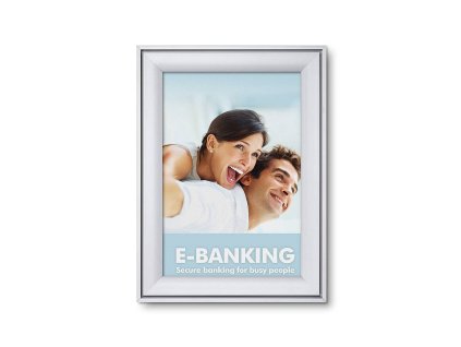 Designový plakátový rám Compasso s dvojitým profilem (spodní obvodový profil je viditelný). Profil o šířce 37 mm v základním barevném provedení - stříbrný ELOX. Velmi reprezentativní design rámu. Dodáváme ve formátech A4 až A0, 50x70 cm a 70x100 cm. Na základě požadavku vyrobíme rám ve specifických rozměrech nebo barevném provedení.
