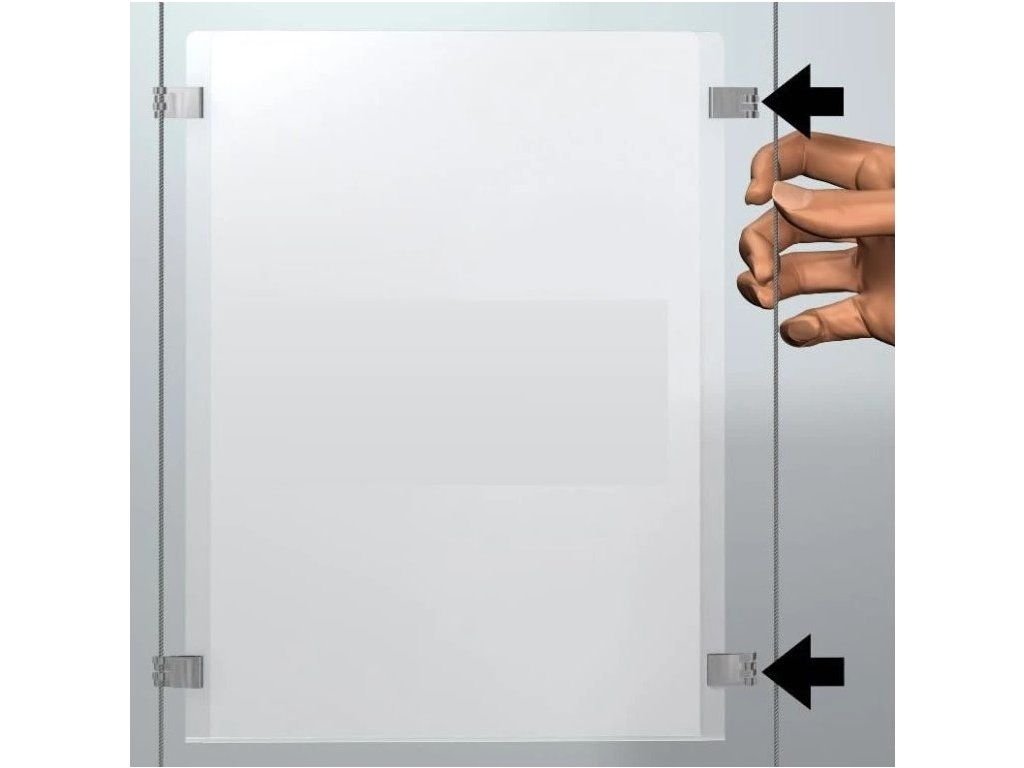 Plechová spona pro uchycení plakátové kapsy na ocelová lanka