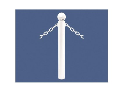 Ocelový zahrazovací sloupek Ø 114 mm řady Province s hlavicí Boule, určený pro řetězovou zábranu. Průběžný sloupek se dvěma oky. Barevné provedení barva černá RAL9005 na žárové...