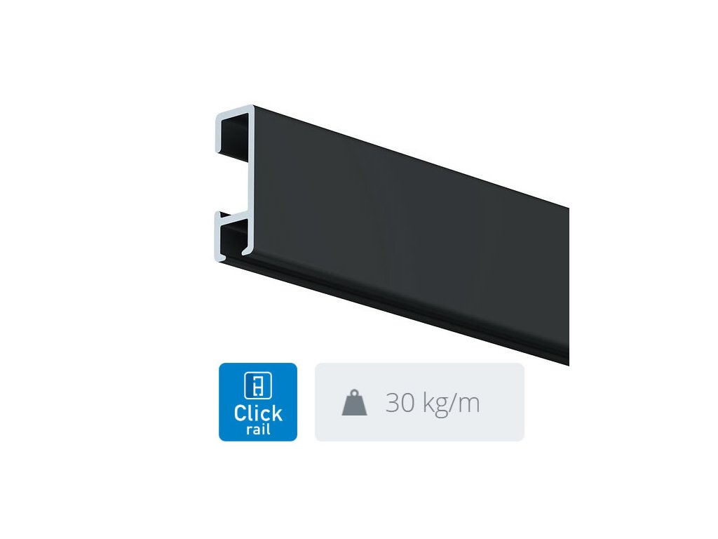 Click Rail je velmi oblíbeným závěsným systémem pro variabilní zavěšení obrazů či grafik v galeriích, na výstavách, ve školách či v domácnostech.