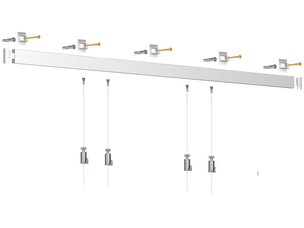 Nástěnný set na obrázky - Click Rail 1,5m, hliníkový + 4x ocelové lanko včetně háčků