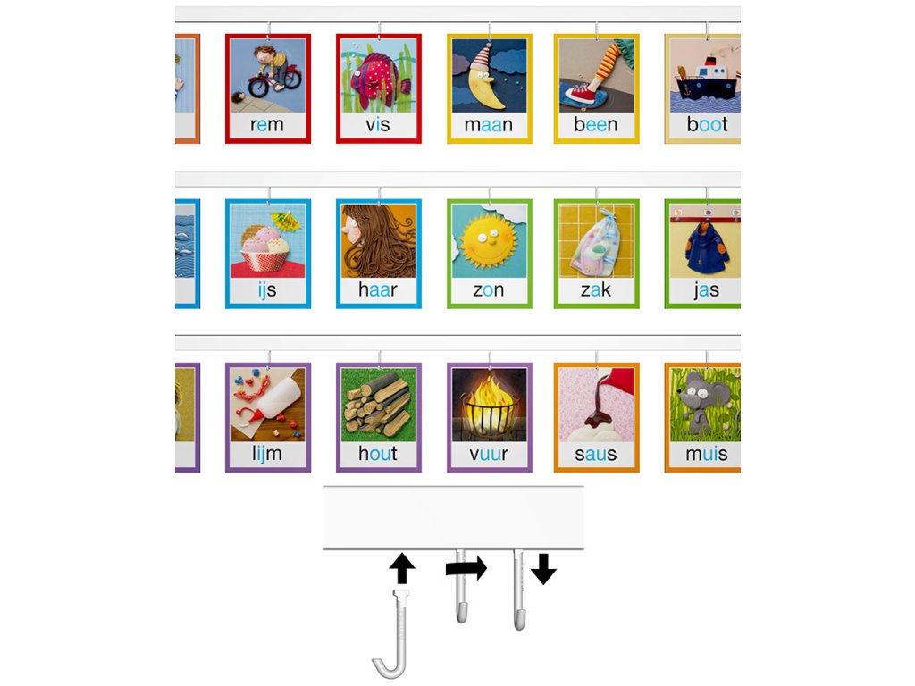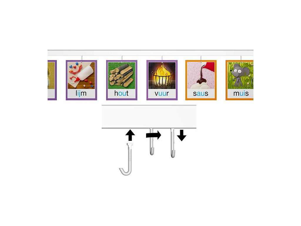 Nástěnný set na obrázky - Click Rail 3m, bílý + 25x háček Twister Hook