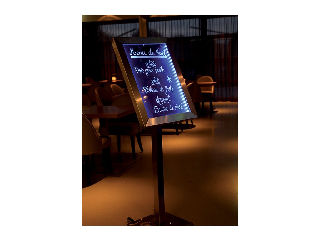Osvětlená vitrína na menu, nerezová - montáž na stojan