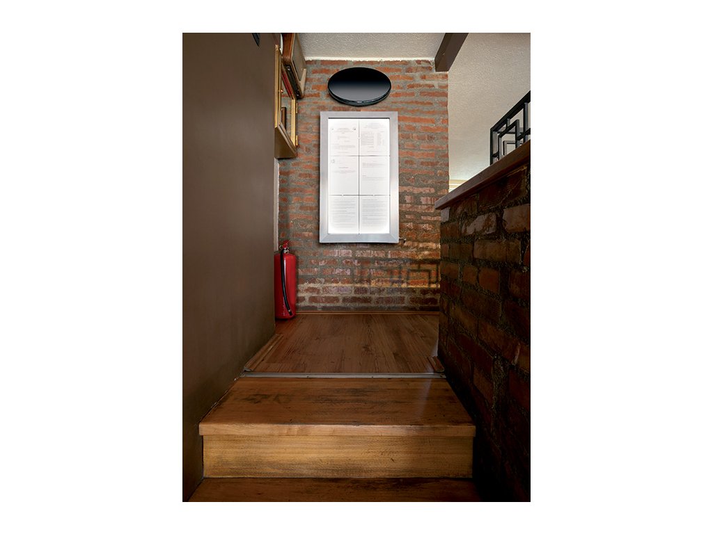 Osvětlená vitrína na menu, nerezová - montáž na stěnu