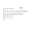 Standardní písmeno má rozměr: výška 19mm, šířka 12mm, tloušťka 2mm