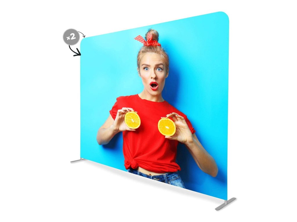Stěna je sestavena z hliníkových trubek s podstavou. Doporučený potisk na pružnou textilii se zipem. Vhodné pro jednostranný i oboustranný tisk.