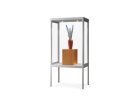 Skleněná vitrína na produkty nebo exponáty se čtvercovou podstavou 400 x 400 mm. Konstrukce z hliníkového profilu, se čtyřmi výškově stavitelnými skleněnými policemi. Stříbrné...