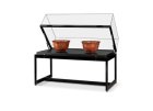 Skleněná vitrína na produkty nebo exponáty se čtvercovou podstavou 500 x 500 mm. Konstrukce z hliníkového profilu, se čtyřmi výškově stavitelnými skleněnými policemi.