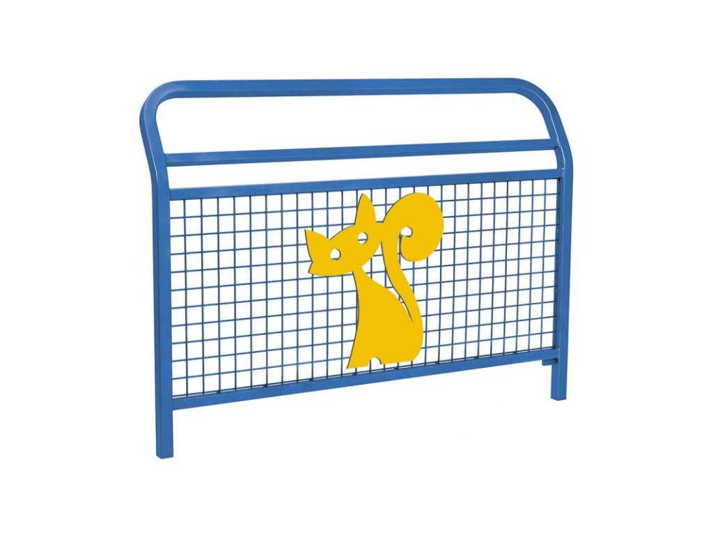 Školní zábradlí Conviviale s mříží a motivem "kočka", délka 1500 mm, barva modrá RAL5010