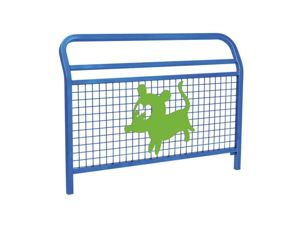 Školní zábradlí Conviviale s mříží a motivem "pes", délka 1500 mm, barva modrá RAL5010