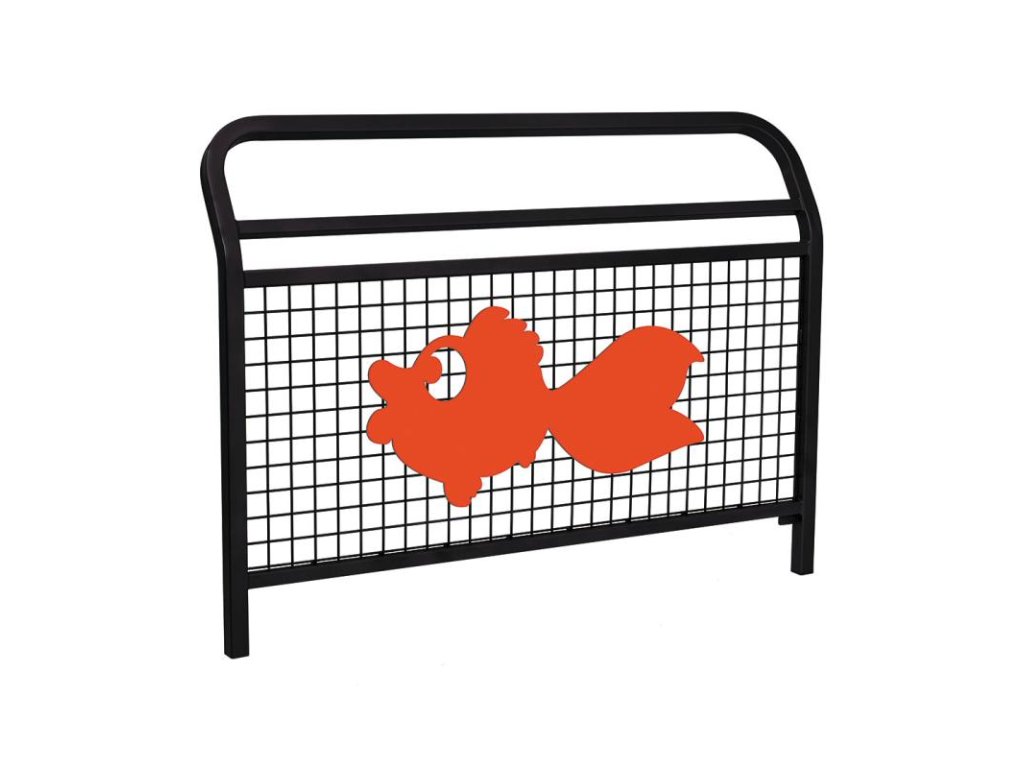 Zábradlí Conviviale s mříží v černé barvě RAL 9005, o délce 1 500 mm, s motivem ryby v červené barvě je odolné, pevné a snadno udržovatelné řešení pro veřejné prostory. Díky dětskému motivu je ideální pro školky, školy a dětská hřiště, kde spojuje spolehlivou ochranu, dlouhou životnost a hravý vzhled, který zpříjemní okolní prostředí.