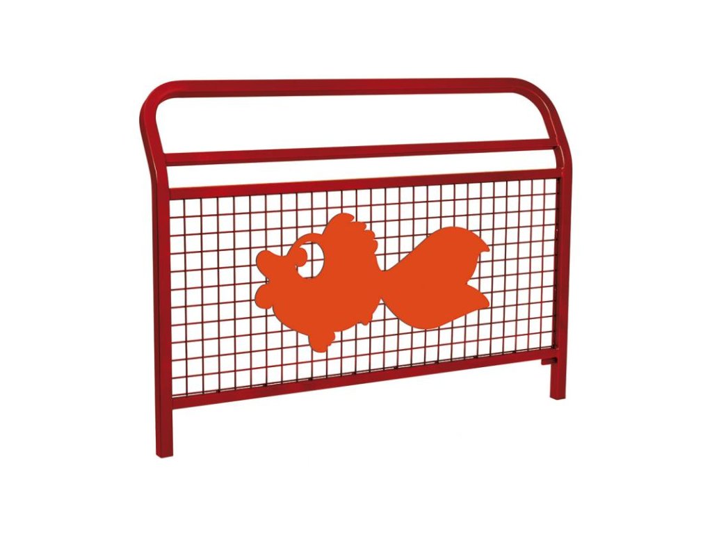 Zábradlí Conviviale s mříží ve vínové barvě RAL 3004, o délce 1 500 mm, s motivem ryby v červené barvě je odolné, pevné a snadno udržovatelné řešení pro veřejné prostory. Díky dětskému motivu je ideální pro školky, školy a dětská hřiště, kde spojuje spolehlivou ochranu, dlouhou životnost a hravý vzhled, který zpříjemní okolní prostředí.