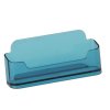 Jednoduchý stolní stojánek na vizitky s jednou kapsou. Vhodné pro umístění navštívenek na šířku. Vyrobeno z polystyrenu v různých barvách.