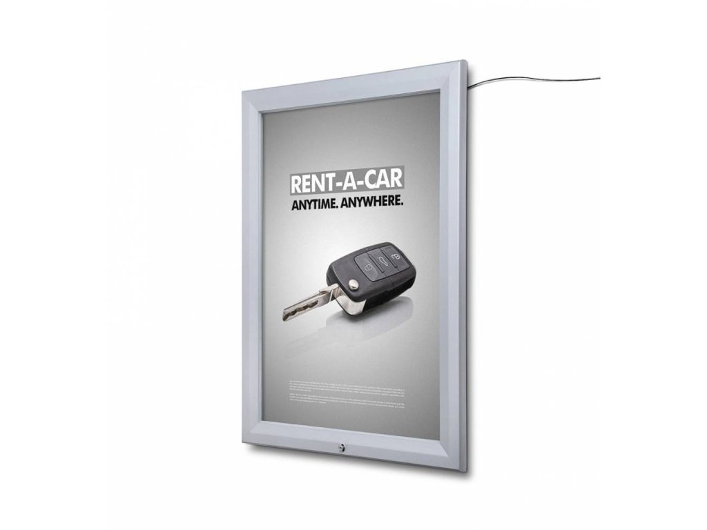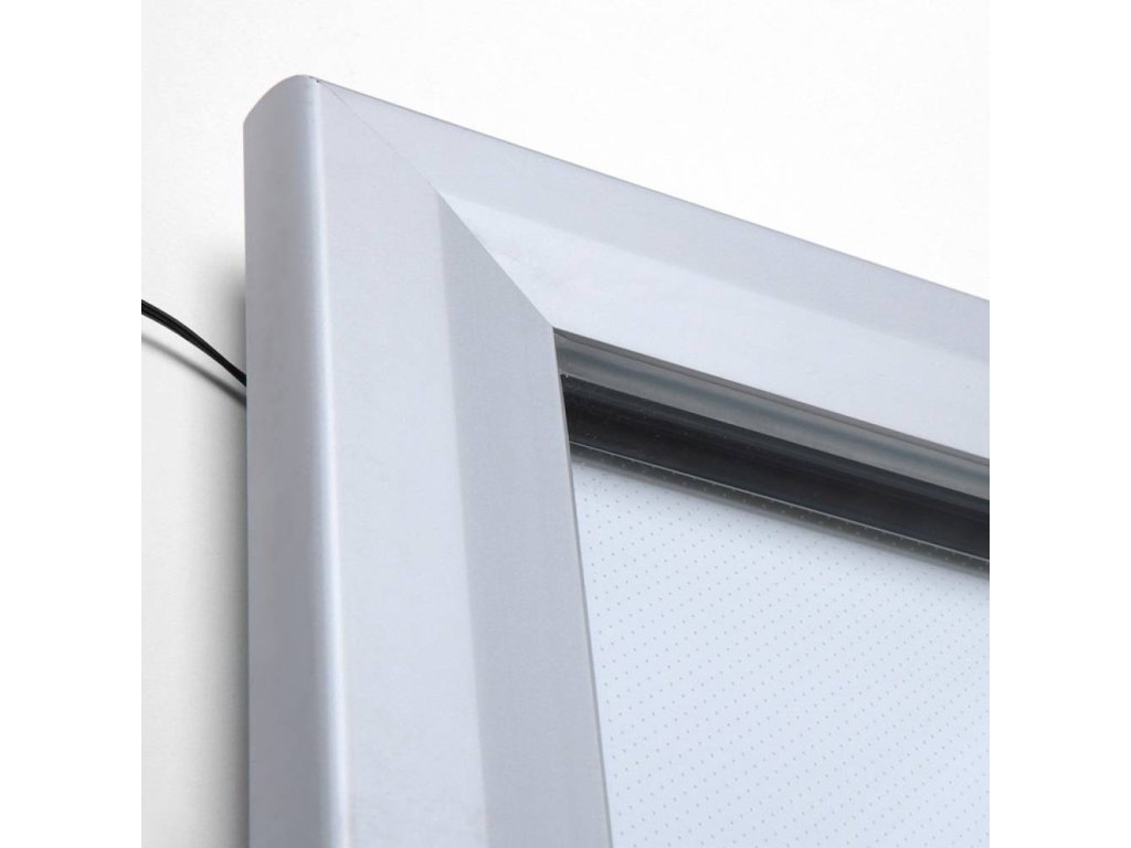 Venkovní světelná LED vitrína pro plakáty o velikosti A1. Skleněná výplň čelních dveří je z bezpečnostního skla (4mm), čelní dveře jsou osazeny silikonovým těsněním s certifikací IP56 – odolnost vůči vlivům počasí. Venkovní vitrína má silné hliníkové profily a podsvícenou LED zadní stěnu. Snadnou manipulaci zajišťují horní panty dveří s plynovými otvíracími písty.