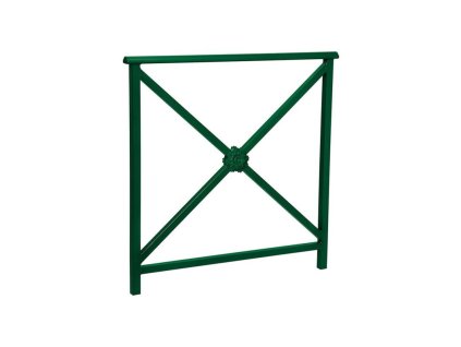Zábradlí Lisabon 1000 mm v provedení zelená RAL 6005 s výplní jednoduchý kříž s okrasnou růžicí představuje elegantní a odolné ocelové zábradlí v klasickém městském stylu....