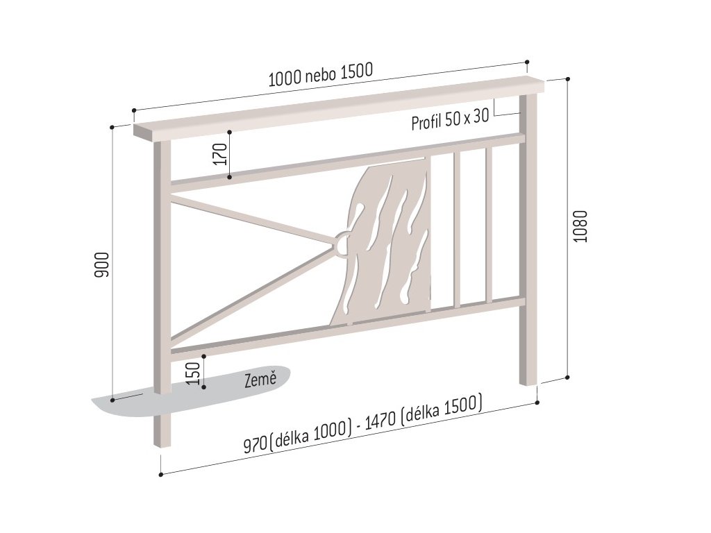 Zábradlí Benátky, délka 1000 mm, jednoduchý kříž, barva šedá RAL7044