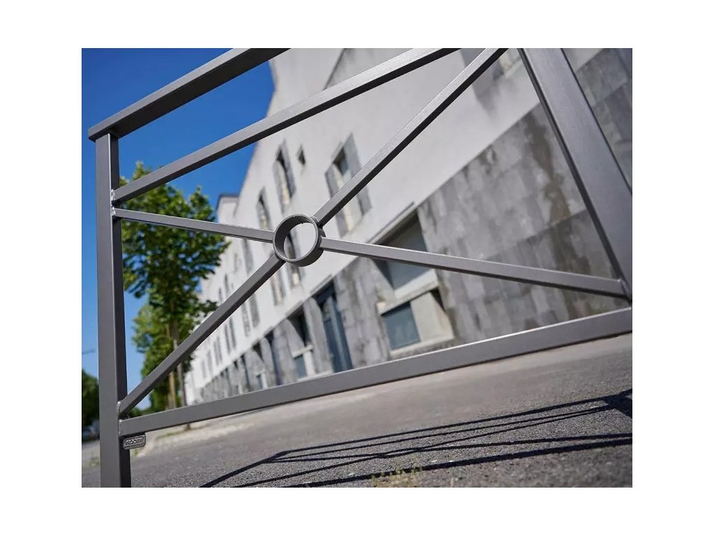 Zábradlí Benátky 1000 mm v šedé barvě RAL 7044 s jednoduchým křížem působí čistě a nadčasově. Hodí se pro městské i soukromé prostory, kde tvoří decentní, ale výrazný architektonický prvek. Ocelová konstrukce zaručuje dlouhou životnost a bezpečnost.