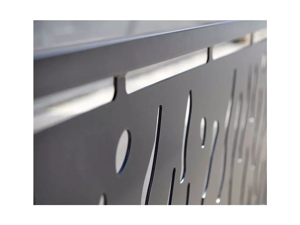 Zábradlí Benátky 1000 mm v hnědé barvě RAL 8017 s výplní z ocelového plechu s vypalovaným motivem působí moderně a elegantně. Je vhodné pro městské i soukromé prostory, kde tvoří výrazný architektonický prvek s dekorativním charakterem. Pevná ocelová konstrukce zaručuje dlouhou životnost, odolnost a bezpečné oddělení prostoru.