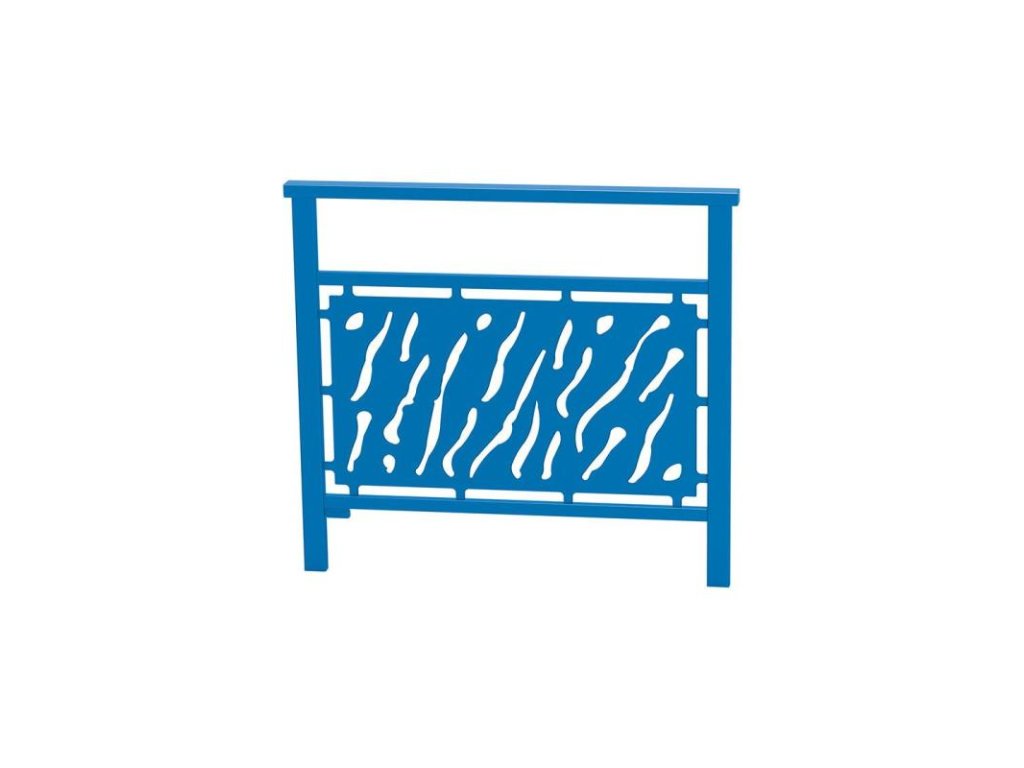 Zábradlí Benátky 1000 mm v modré barvě RAL 5010 s výplní z ocelového plechu s vypalovaným motivem působí moderně a elegantně. Je vhodné pro městské i soukromé prostory, kde tvoří výrazný architektonický prvek s dekorativním charakterem. Pevná ocelová konstrukce zaručuje dlouhou životnost, odolnost a bezpečné oddělení prostoru.