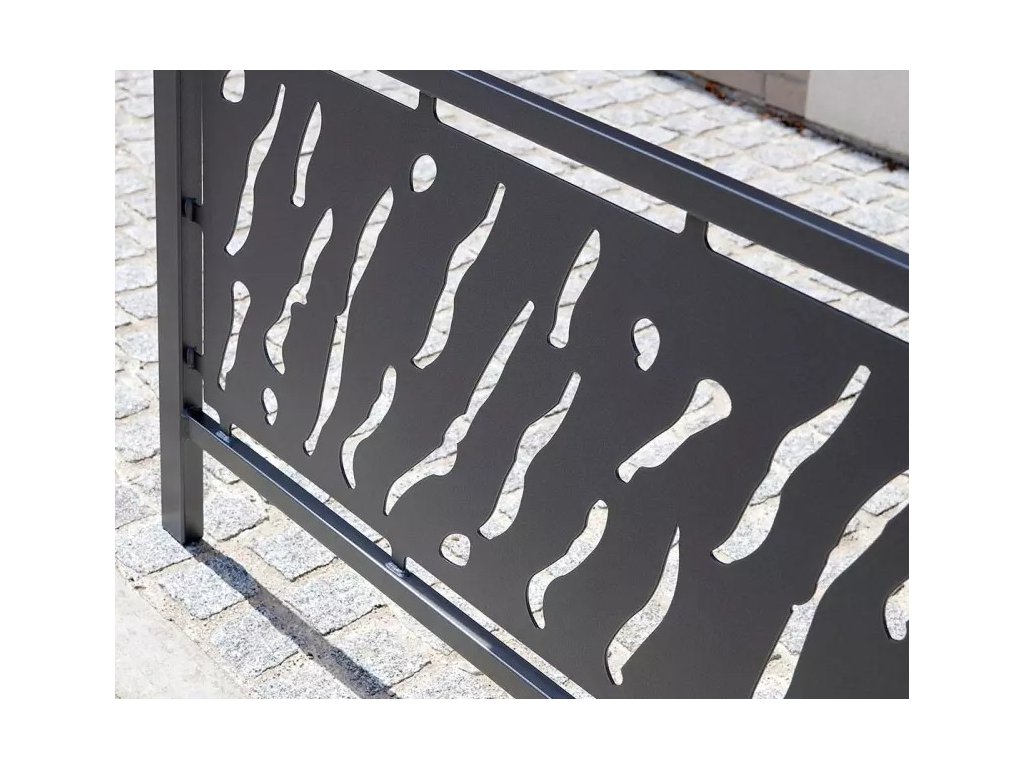 Zábradlí Benátky 1500 mm v šedé barvě Procity s výplní z ocelového plechu s vypalovaným motivem působí moderně a elegantně. Je vhodné pro městské i soukromé prostory, kde tvoří výrazný architektonický prvek s dekorativním charakterem. Pevná ocelová konstrukce zaručuje dlouhou životnost, odolnost a bezpečné oddělení prostoru.