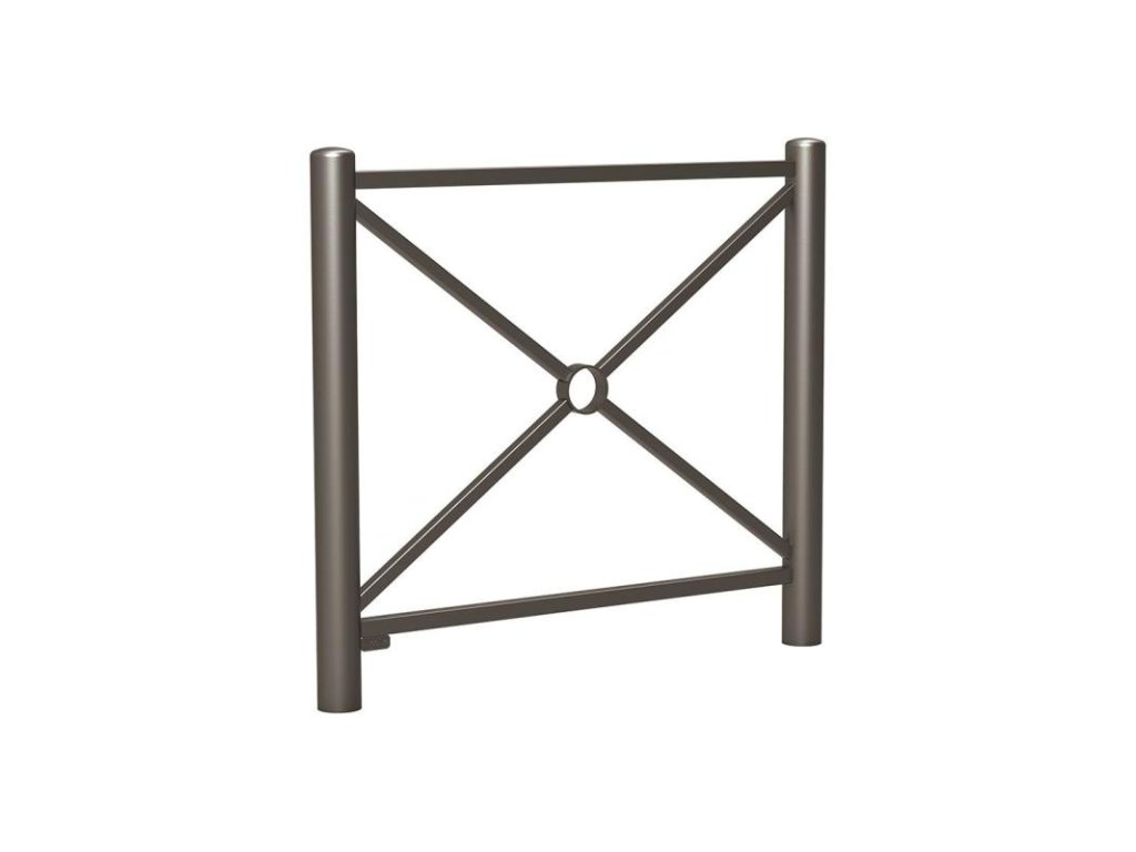 Zábradlí Carrefour o délce 1072 mm v šedé barvě Procity s jednoduchou hlavicí a výplní ve tvaru klasického kříže nabízí elegantní vzhled, odolnou ocelovou konstrukci s kvalitní povrchovou úpravou a dlouhou životnost pro veřejné prostory.