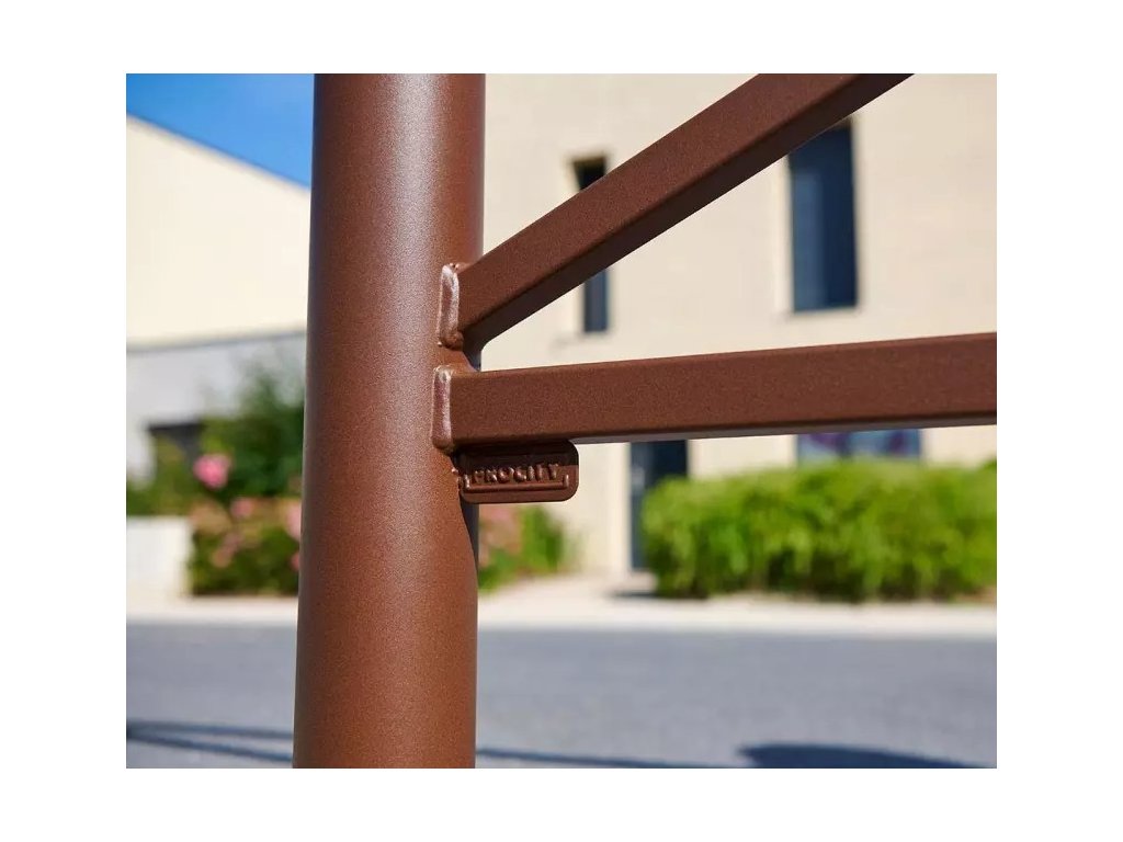 Jeho konstrukce je tvořena ocelovými trubkami o průměru ø 76 mm, opatřenými žárovým zinkováním a kvalitním lakováním ve vybraném odstínu ze vzorníku barev. Tato povrchová úprava výrazně zvyšuje odolnost proti korozi i povětrnostním vlivům, a přispívá k jednotnému vzhledu i minimálním nárokům na údržbu.