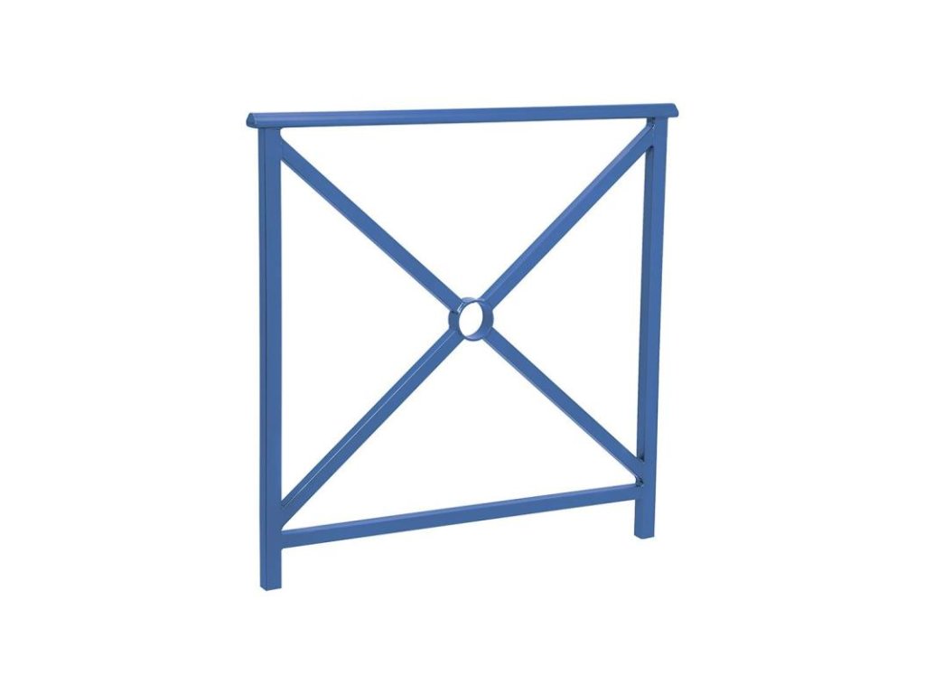Zábradlí Lisabon délky 1000 mm, v barevném provedení modrá RAL 5010, výplň jednoduchý kříž – elegantní a odolné ocelové zábradlí s klasickým městským designem. Nabízí vysokou pevnost, dlouhou životnost a čistý vzhled, vhodný pro veřejné prostory.
