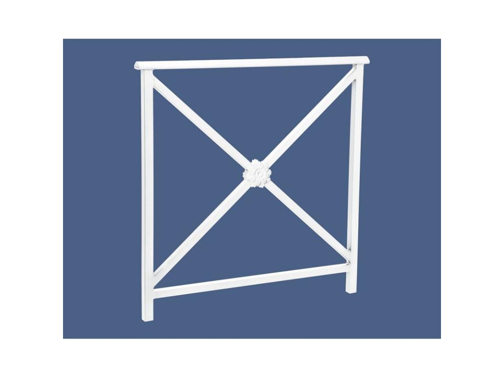 Zábradlí Lisabon 1000 mm v provedení bílá RAL 9010 s výplní jednoduchý kříž s okrasnou růžicí představuje elegantní a odolné ocelové zábradlí v klasickém městském stylu. Vyniká vysokou pevností, dlouhou životností a čistým vzhledem, který se skvěle hodí pro veřejné i reprezentační prostory.