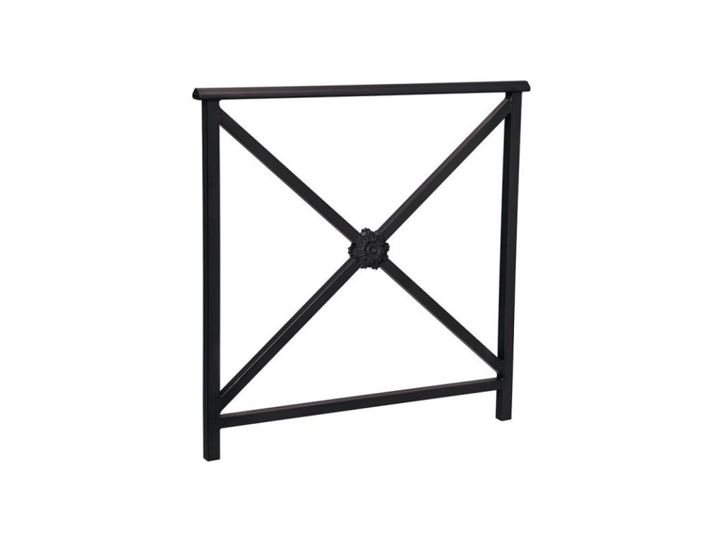 Zábradlí Lisabon 1000 mm v provedení černá RAL 9005 s výplní jednoduchý kříž s okrasnou růžicí představuje elegantní a odolné ocelové zábradlí v klasickém městském stylu. Vyniká vysokou pevností, dlouhou životností a čistým vzhledem, který se skvěle hodí pro veřejné i reprezentační prostory.