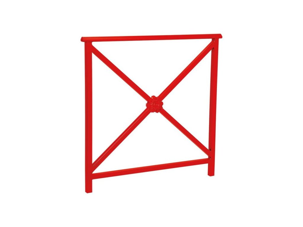 Zábradlí Lisabon 1000 mm v provedení červená RAL 3020 s výplní jednoduchý kříž s okrasnou růžicí představuje elegantní a odolné ocelové zábradlí v klasickém městském stylu. Vyniká vysokou pevností, dlouhou životností a čistým vzhledem, který se skvěle hodí pro veřejné i reprezentační prostory.