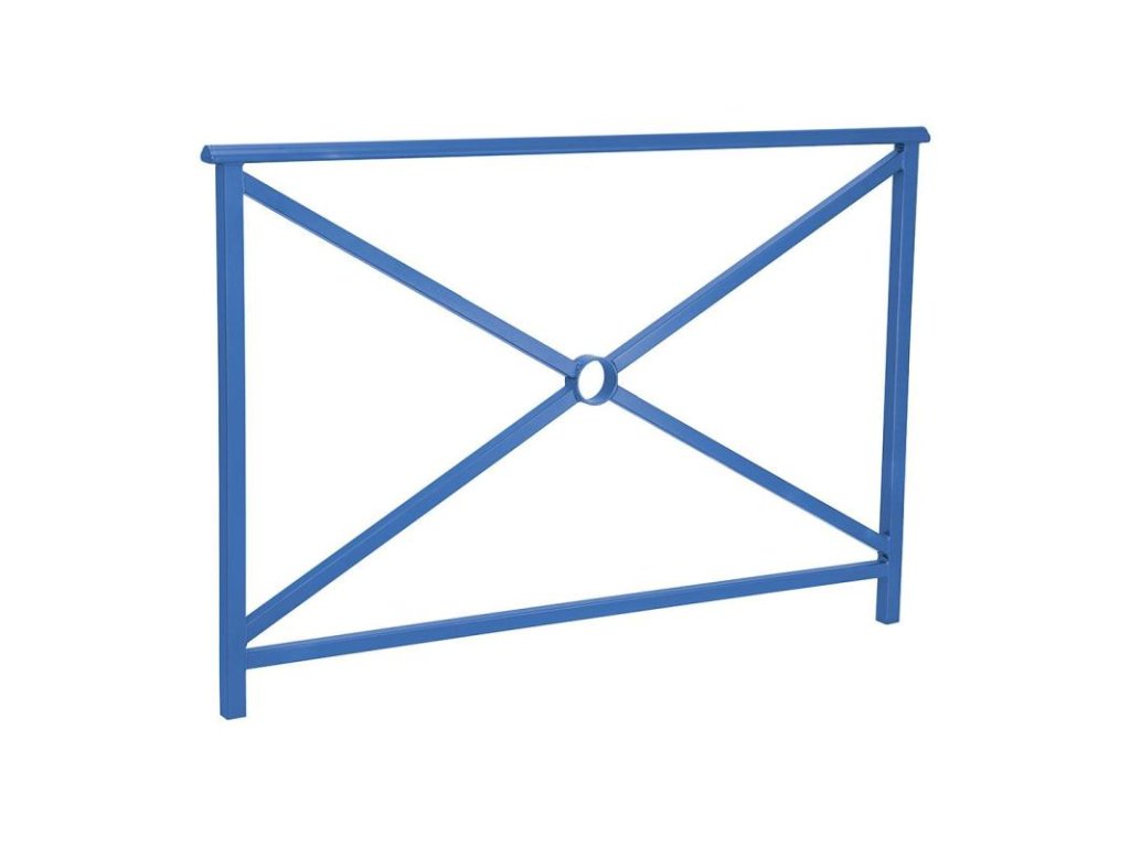 Zábradlí Lisabon délky 1500 mm, v barevném provedení modrá RAL 5010, výplň jednoduchý kříž – elegantní a odolné ocelové zábradlí s klasickým městským designem. Nabízí vysokou pevnost, dlouhou životnost a čistý vzhled, vhodný pro veřejné prostory.