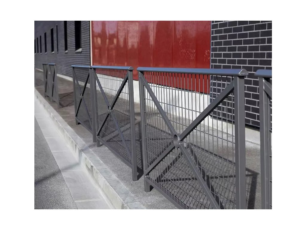 Zábradlí Lisabon 1500 mm v provedení modrá RAL 5010 s výplní jednoduchý kříž s mříží je elegantní a odolné ocelové zábradlí v klasickém městském stylu. Vyznačuje se vysokou pevností, dlouhou životností a čistým vzhledem, který se výborně hodí pro veřejné prostory i reprezentativní objekty.