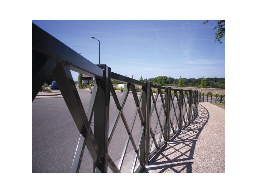 Tradiční zábradlí Losange o délce 1500 mm v elegantní bílé barvě RAL9010. Robustní ocelová konstrukce s úhlopříčnými výplněmi poskytuje pevnost a bezpečnost, možnost odnímatelnosti pak zaručuje flexibilní využití v městském prostředí.