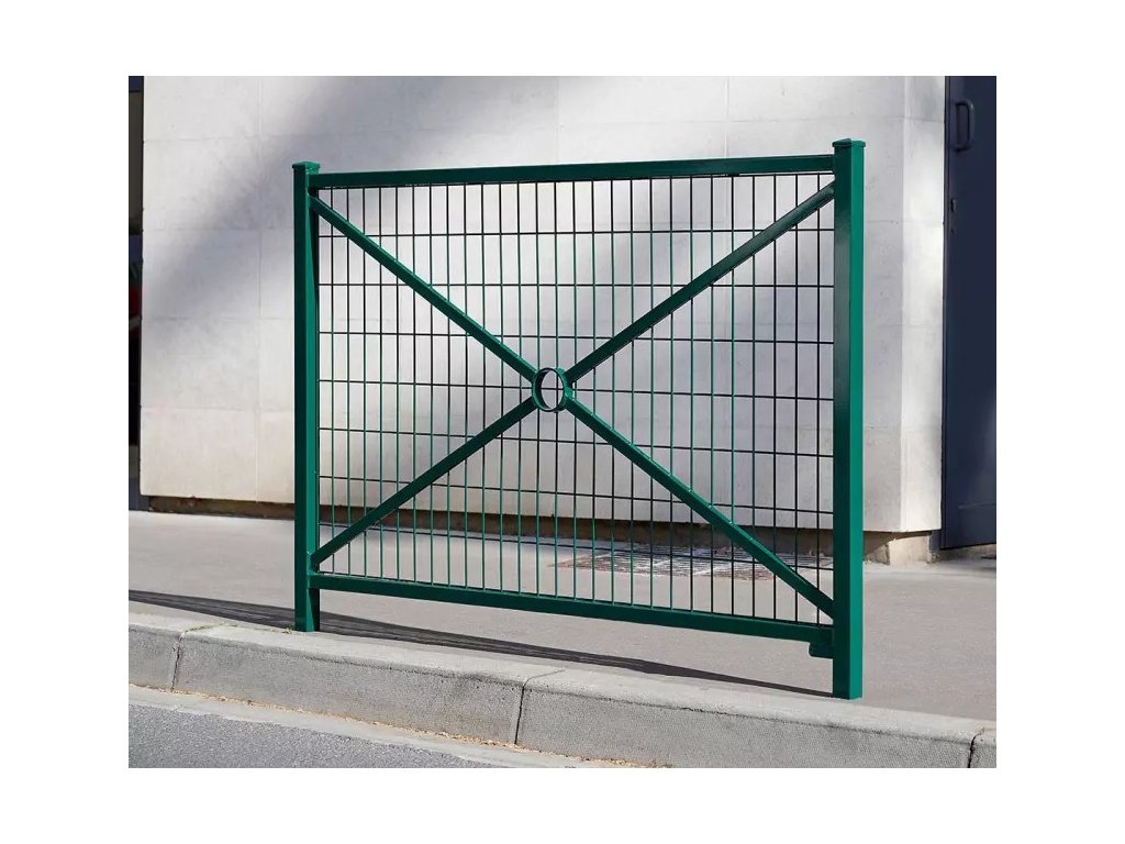 Zábradlí Orléans o délce 1470 mm v zelené barvě RAL 6005 s výplní jednoduchý kříž s mříží kombinuje klasický vzhled s odolností. Jemná mřížová struktura dodává zábradlí lehkost a zároveň zvyšuje bezpečnost, díky čemuž je ideální pro městské prostory, parky i historická prostředí.