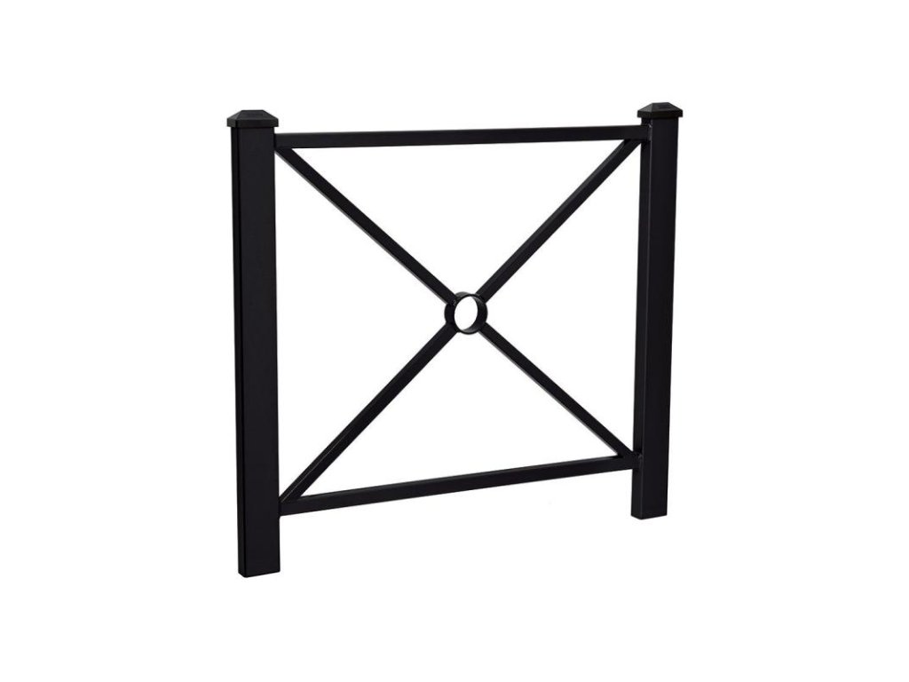 Zábradlí Pagode 1080 mm v černé barvě RAL 9005 s výplní v podobě jednoduchého kříže nabízí pevnou ocelovou konstrukci a čistý, funkční design. Je vhodné pro veřejné i komerční prostory, kde spolehlivě vymezuje a chrání prostor.