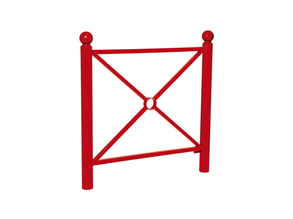Zábradlí Province v červené barvě RAL 3020 o délce 1072 mm s hlavicí Boule a jednoduchou křížovou výplní. Pevná ocelová konstrukce s kvalitní povrchovou úpravou zaručuje dlouhou životnost a jednotný vzhled ve veřejném prostoru.