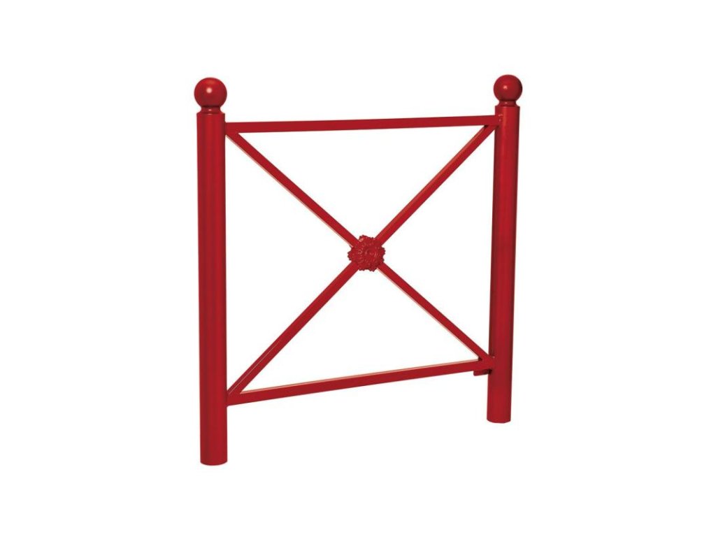 Zábradlí Province ve vínové barvě RAL 3004 o délce 1072 mm s hlavicí Boule a výplní typu jednoduchý kříž s okrasnou růžicí. Robustní ocelová konstrukce s kvalitní povrchovou úpravou zajišťuje dlouhou životnost, vysokou odolnost vůči povětrnostním vlivům a esteticky jednotný vzhled ve veřejném prostoru.