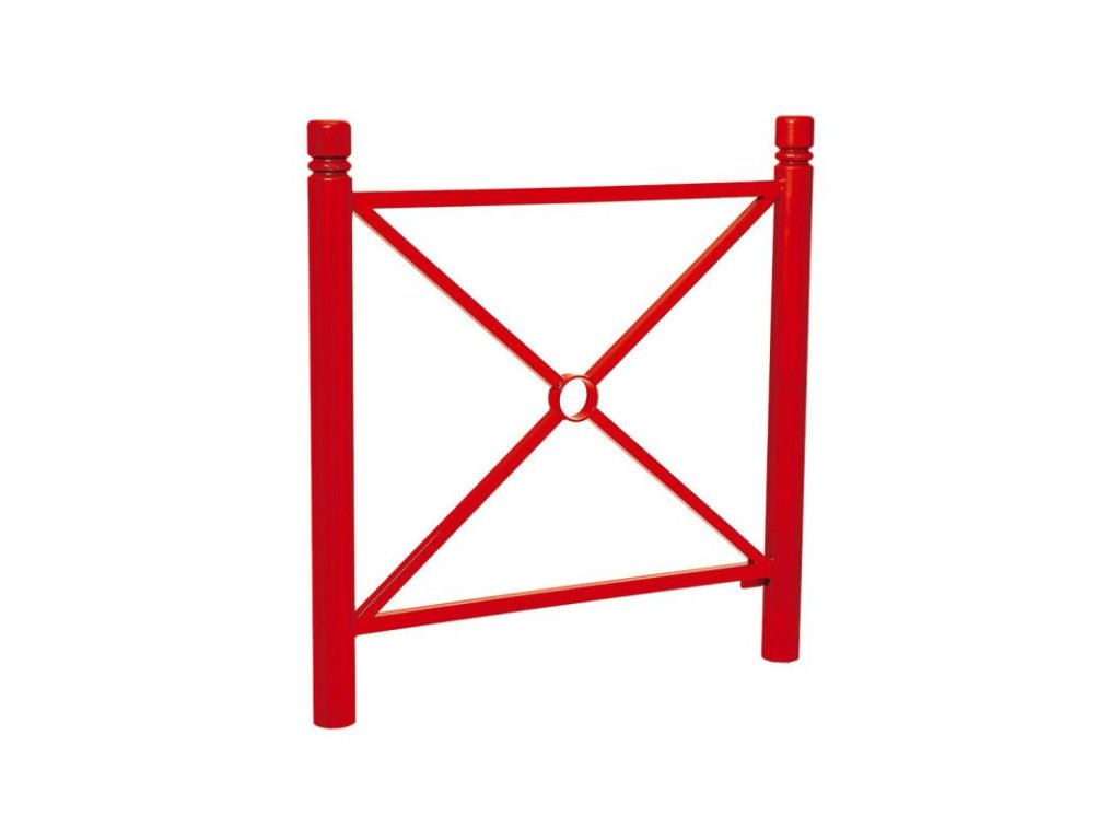Zábradlí Province v červené barvě RAL3020, délka 1072 mm, s hlavicí City a výplní jednoduchý kříž. Odolná ocelová konstrukce s povrchovou úpravou zajišťuje dlouhou životnost i jednotný vzhled ve veřejném prostoru.