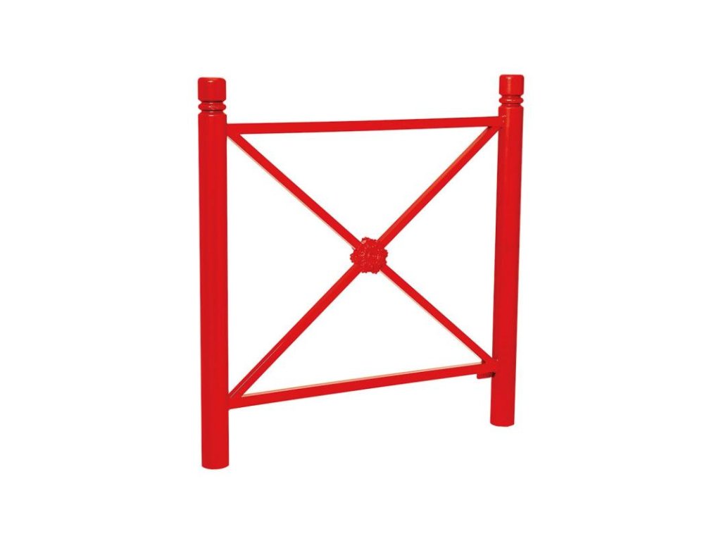 Zábradlí Province v červené barvě RAL 3020, délky 1072 mm, s hlavicí City a výplní typu jednoduchý kříž s okrasnou růžicí. Pevná ocelová konstrukce s kvalitní povrchovou úpravou zaručuje dlouhou životnost, odolnost vůči povětrnostním vlivům a esteticky jednotný vzhled ve veřejném prostoru.