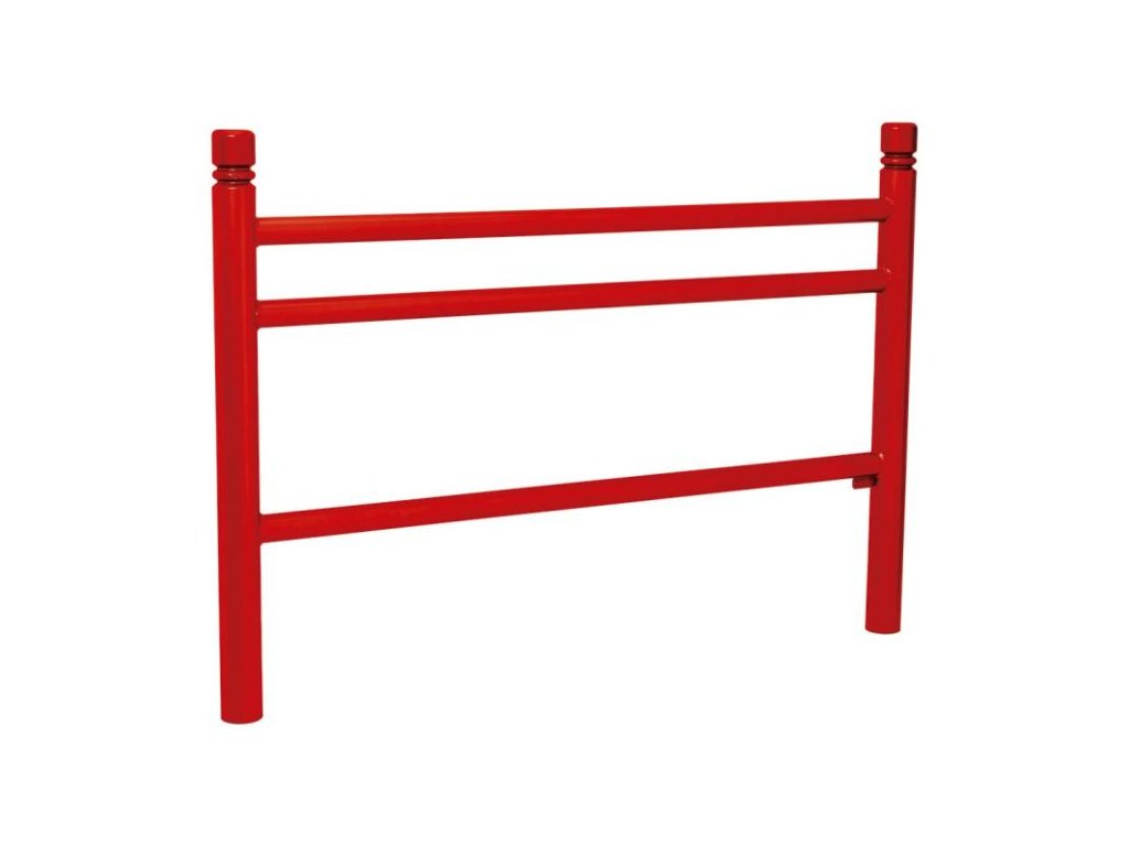 Zábradlí Trio City o délce 1572 mm v červené barvě RAL 3020 kombinuje moderní design s funkčností. Elegantní hlavice City a tři horizontální příčky vytvářejí lehký, harmonický prvek vhodný pro městské prostory i pěší zóny.