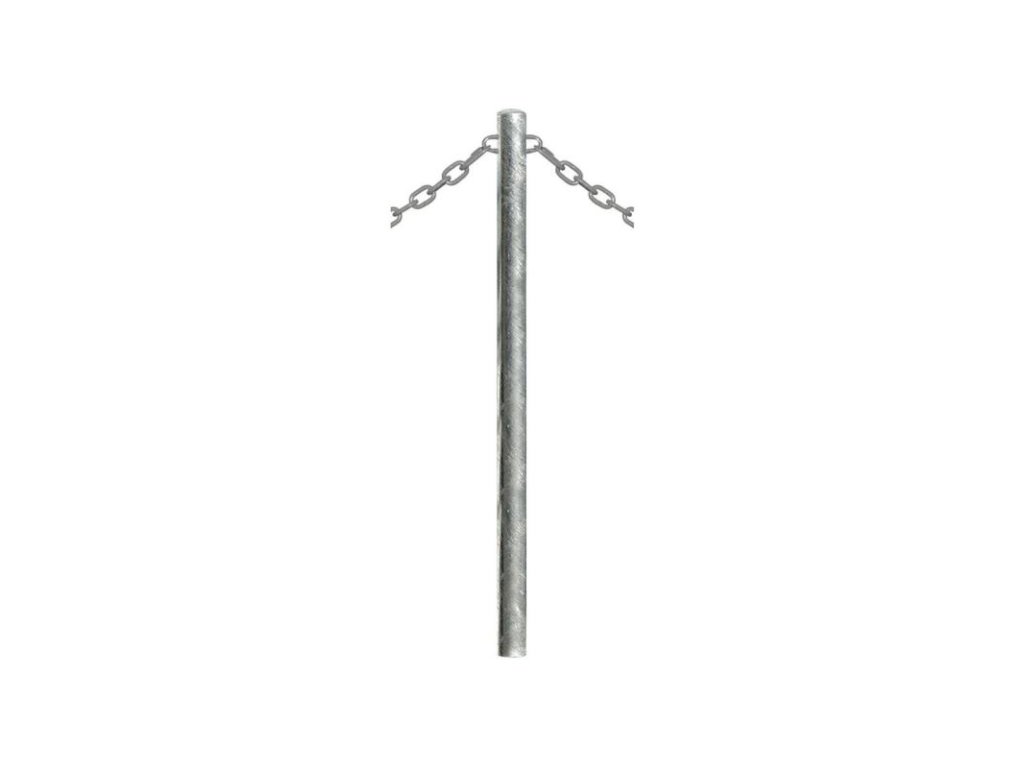 Zahrazovací ocelový sloupek Ø 60 mm v provedení žárové zinkování se dvěma oky pro řetěz - průběžný. Elegantní a zároveň bezpečný způsob oddělení pěších zón od vozovek.