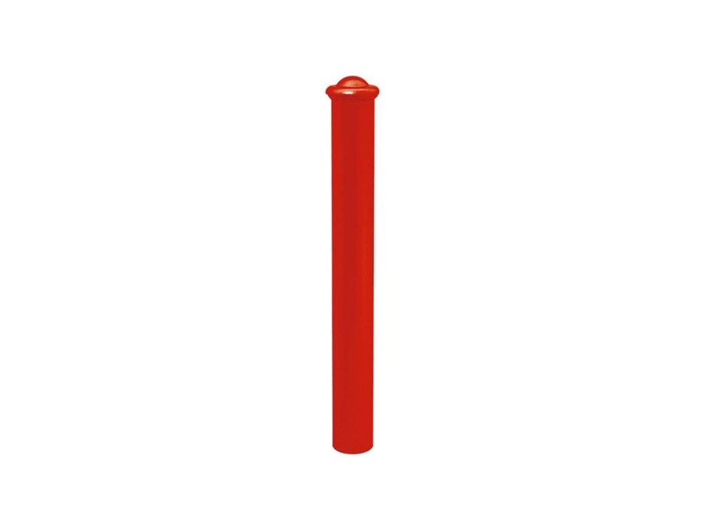 Ocelový sloupek řady Province s hlavicí Agora, Ø 114 mm, v červené barvě RAL 3020. Viditelná výška 1 052 mm, žárově zinkovaný podklad zajišťuje odolnost a dlouhou životnost.