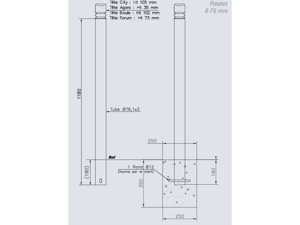 Elegantní sloupek Province s hlavicí Boule a průměrem Ø 76 mm v hnědé barvě RAL 8017. Díky viditelné výšce 1 102 mm a žárově zinkovanému podkladu nabízí moderní vzhled i vysokou odolnost.