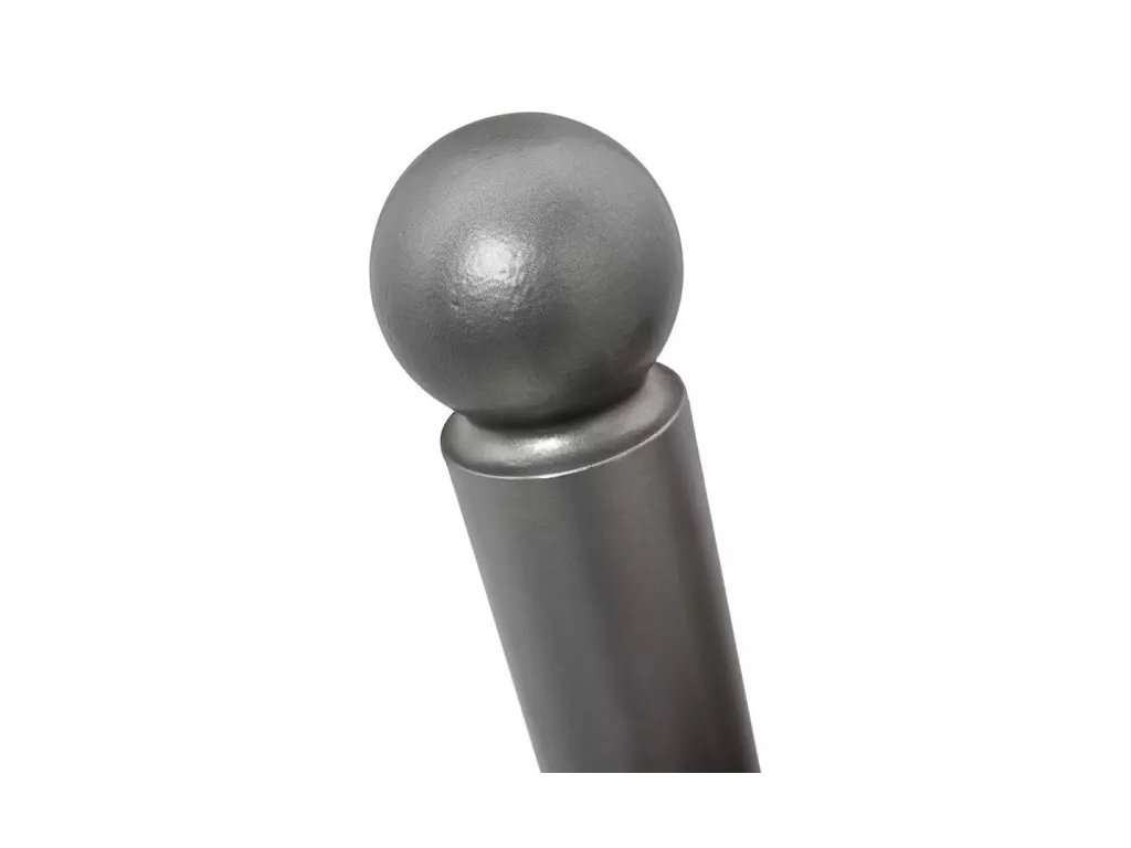 Ocelový zahrazovací sloupek Ø 76 mm, designová řada Province s litinovou hlavicí Boule. Koncový sloupek je opatřen jedním okem pro napojení řetězů.