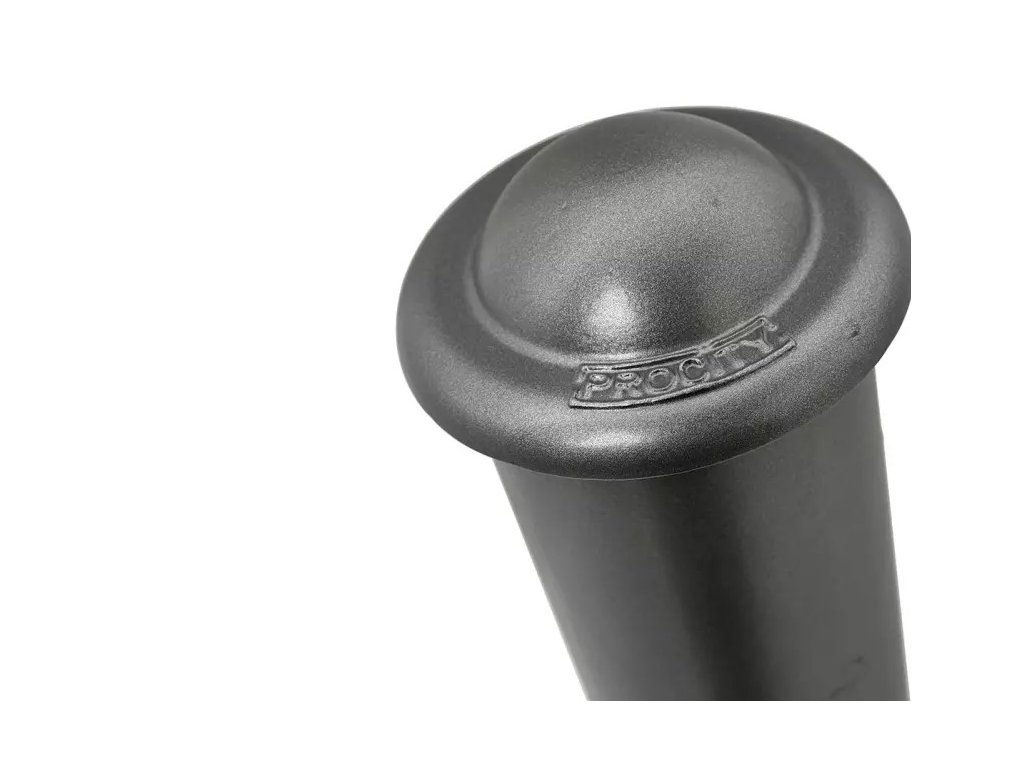 Ocelový zahrazovací sloupek Ø 76 mm, designová řada Province s litinovou hlavicí Agora. Koncový sloupek je opatřen jedním okem pro napojení řetězů.